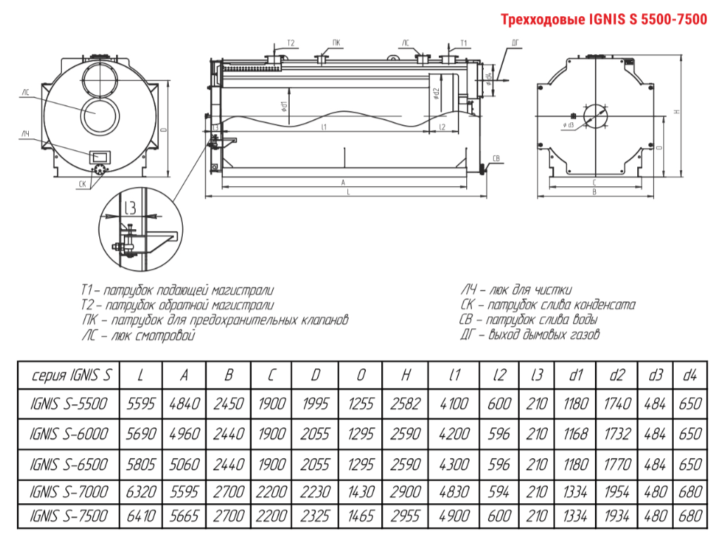 Технические характеристики водогрейного трёхходового котла ARCUS IGNIS S-5500