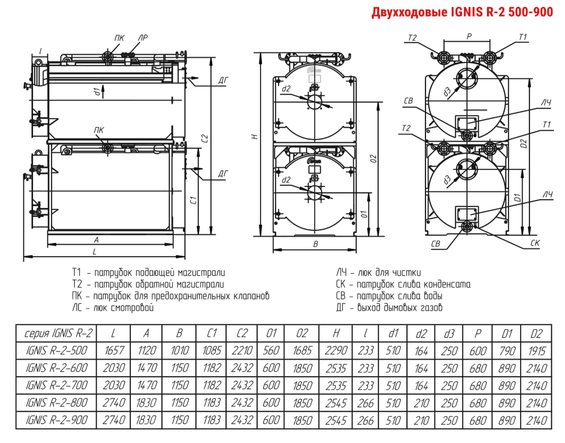 Технические характеристики модульного водогрейного трёхходового котла ARCUS IGNIS R-2-600
