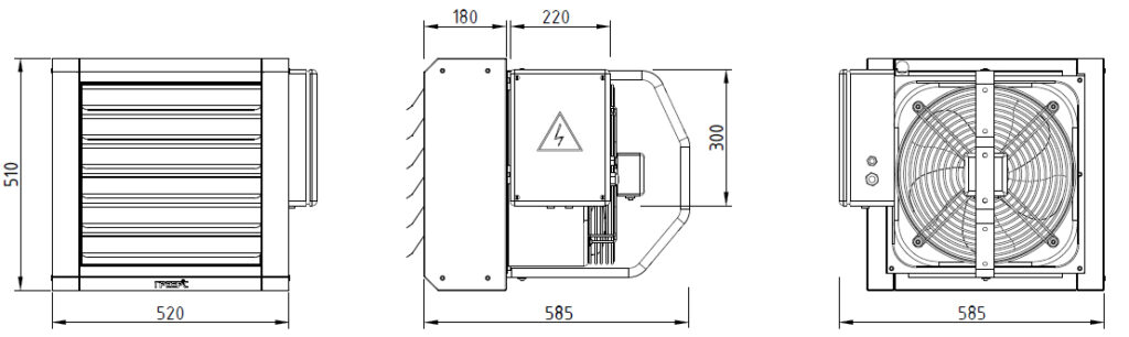 Габариты тепловентилятора ГРЕЕРС серии ЕС-12 IP54